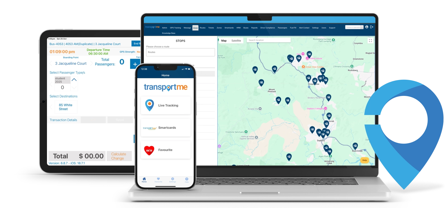 transportme is a modern transit management ecosystem that connects every part of your operation – ticketing, tracking, compliance, communication, operations and fleet – in one secure, easy-to-use system. Built for operators, schools and government agencies – providing visibility, control, and accountability to run safer, more efficient services.